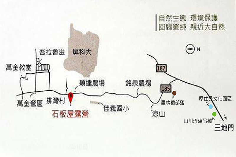 1.南下:國道3號往南至長治交流道下,接台24線東向往三地門方向,接屏185線往瑪家涼山瀑布方向即可抵達農場(185線32.1K)。
